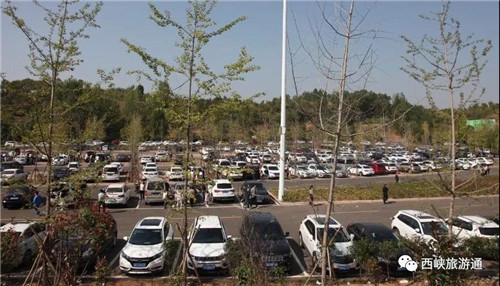 五道幢停車場內(nèi),排滿了小型客車,自駕游的游客朋友們,紛紛拿著高速票去兌換景區(qū)門票啦!