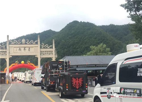 來(lái)自河南新媒體聯(lián)盟的自駕游車(chē)隊(duì),排序進(jìn)入西峽各景區(qū)。