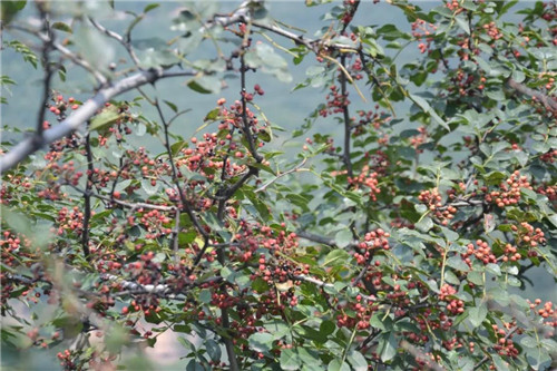 夏末初秋的太行大峽谷,夏木還郁郁蔥蔥的昭示著它磅礴的生命力,但是在濃密的綠色中悄悄探出頭的各色果實卻在昭示著秋天的臨近。紅色的花椒,悄悄的吐露出它黑色的種子;還未成熟的山楂在這樣綠色的樹葉間悄悄的伸出來頭,慢慢的紅了臉;還有山間的梨子也在不知不覺間開始悄悄的泛出為微黃的顏色......