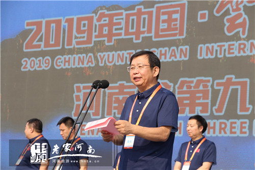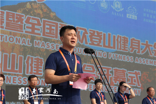 云臺(tái)山景區(qū)管理局局長(zhǎng)馬春明介紹登山賽情況