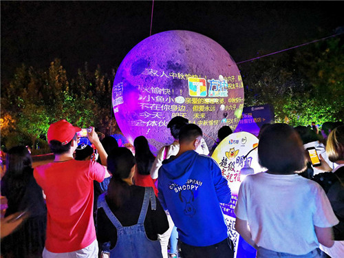 賞月是中秋節(jié)必不可少的一大傳統(tǒng)。方特夢幻王國為廣大游客準(zhǔn)備了一輪“超級大月亮”。游客們不僅可以和“超級明月”合照,還可將自己的祝福發(fā)送至“月球”,以特別的方式向家人、朋友和愛人寄出特別的祝福。
