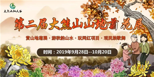 秋高氣爽,五彩繽紛齊怒放,清香滿園,千姿菊花吐芬芳,不一樣的菊花之旅,不一樣的賞秋之旅,不一樣的休閑之旅。2019年9月28日,大熊山仙人谷第二屆山地菊花展將盛大開啟,同游繽紛山水,共賞夢(mèng)幻花海。