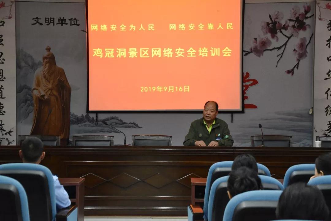 為了提升雞冠洞景區(qū)的安全管理水平,進(jìn)一步強(qiáng)化景區(qū)各部門安全責(zé)任意識(shí),保障景區(qū)的安全穩(wěn)定,讓游客愉快度假。9月16日,雞冠洞景區(qū)開展消防安全、網(wǎng)絡(luò)安全兩大主題的知識(shí)普及專題講座活動(dòng)。打造平安景區(qū),獻(xiàn)禮祖國(guó)70周年華誕。