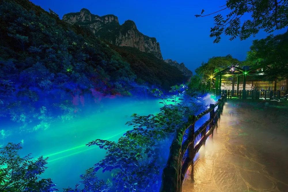 茱萸峰爬完,天可就黑出出,坐上大巴再去瞅瞅云臺山夜游,燈光可火色,山水可俊了,燈光山水一結合,哇塞哇塞!