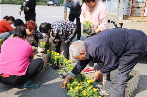 工作人員正在用鮮花擺成各種圖案,為節(jié)日營造喜慶氛圍。
