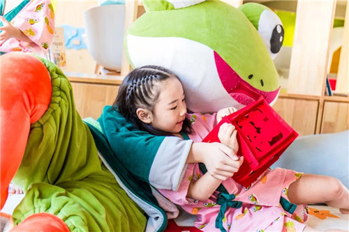 萌娃們玩累了,“電量”告急的時(shí)候,簡(jiǎn)潔安靜的親子繪本屋、閱讀室,親子共讀,以書(shū)為媒介,以閱讀為紐帶,共同學(xué)習(xí),一同成長(zhǎng)。