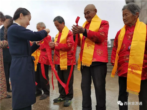2019重陽文化旅游節(jié)活動當(dāng)天,傳承千年的重陽民俗重新上演,體驗(yàn)八臺大轎、登高祈福及品重陽糕菊花酒、戴茱萸囊等祝壽活動使重陽節(jié)文化氛圍濃厚,營造了敬老、親老、愛老、助老的風(fēng)尚,使“重陽壽星”們個個喜笑顏開。