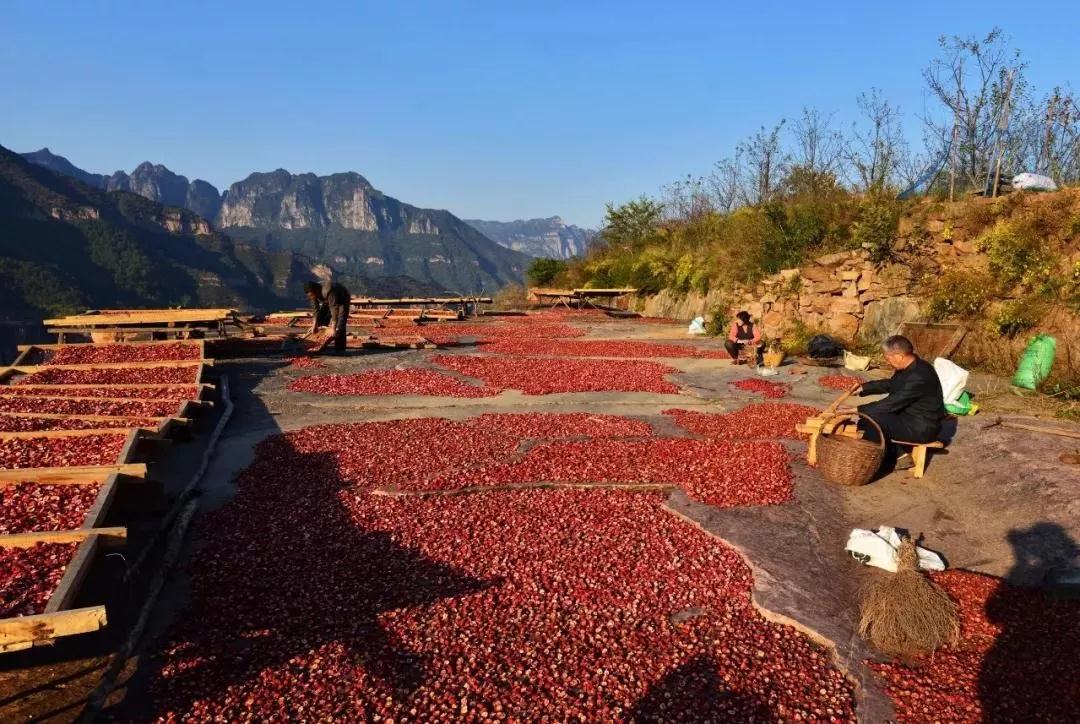 在南太行,山楂除了直接食用外,山里人會把吃不完的山楂切成片,趁著秋日的驕陽晾曬干,待到冬日或者來年食用,這就形成了南太行特有的曬秋景色,一顆顆、一片片,小小的山楂,卻承載了太行山人一年的付出與收獲!