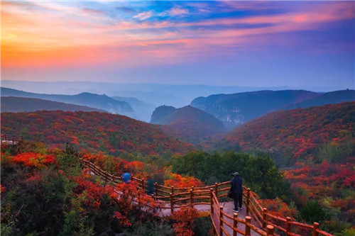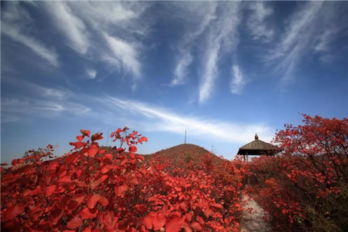 漫步在山間的羊腸小徑,穿過一片片紅葉林,漫山紅葉陪伴您度過這悠悠時光,共賞這屬于秋天的景物。
