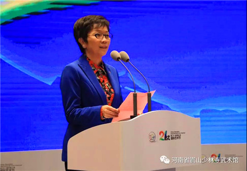 活動(dòng)現(xiàn)場(chǎng),少林寺武術(shù)館功夫表演團(tuán)精彩的少林功夫展示為與會(huì)嘉賓帶來強(qiáng)大的震撼力和感染力,現(xiàn)場(chǎng)觀眾紛紛站起來觀賞、拍照,掌聲不斷。姜繼鼎廳長對(duì)少林寺武術(shù)館功夫表演團(tuán)為促進(jìn)中外文化交流、助力中原更出彩所做出的努力和貢獻(xiàn)給予了高度肯定和評(píng)價(jià)。太極拳、雜技、華夏鼓樂團(tuán)的表演也為觀眾展示了多彩厚重的中原文化。