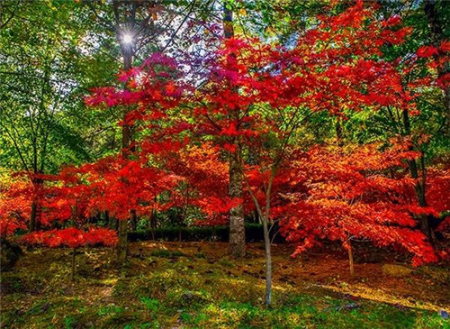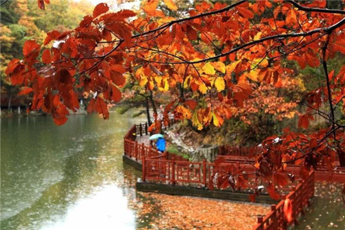 玉皇頂上,白色的云海,紅色的楓葉;雞角曼上,黛色山巒,層林盡然;森林氧吧,紅黃藍(lán)綠,就像一幅油畫;白云湖畔,碧水藍(lán)天,湖光山色。