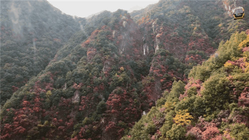 云景索道、中靈索道、峰林索道。乘坐索道不僅能觀看到紅葉,還有小瀑、起伏的山巒。