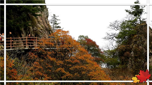 十里畫屏觀賞區(qū)。行走在棧道上,目光所及便是看得見的滿山紅葉,這時的你一定是很自然的拿起手機→邊走邊拍,記得歇歇腳。