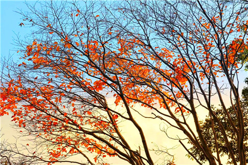 在吊橋上看紅葉。老界嶺高空玻璃吊橋建于老界嶺風景區(qū)神女峰旁,全長達120米,離地高度超百米,是凌駕于峰頂之上的玻璃吊橋。這里不僅是考驗膽量的地方,更是金秋時節(jié)不可錯過的賞紅地,于群山之上,紅海之中,抬起頭,深深的吸一口氣,秋天的味道縈繞鼻尖,是成熟的,是喜悅的,更是熱烈的。而你,完完全全的“淹沒”在這片紅色的海洋里,這種極致體驗盡在金秋時節(jié)的老界嶺!