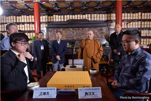 經(jīng)過一整天的博弈,陶漢文蟬聯(lián)桂冠,并于25日在少林寺方丈室內(nèi),向圍棋國手、世界冠軍江維杰九段發(fā)起挑戰(zhàn)。