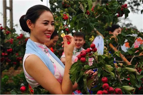 打卡美麗鄉(xiāng)村,壓彎枝頭的韓彥紅果,紅彤彤的果實,映紅了山谷,映紅了游客的笑臉。