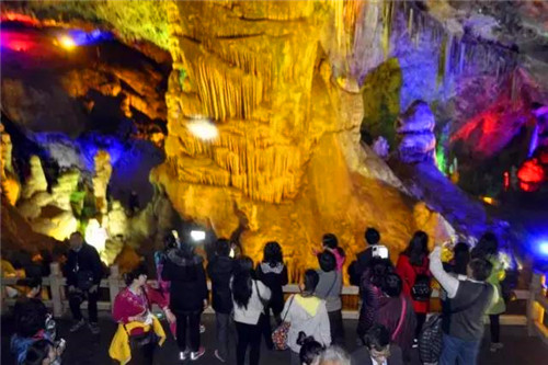 11月9日,兩千多名游客慕名來到雞冠洞景區(qū),既欣賞了秋天的美景又感受了地質(zhì)奇觀的魅力。當(dāng)天,30余輛旅游大巴在該景區(qū)工作人員及隨團(tuán)導(dǎo)游的引導(dǎo)下有序進(jìn)入景區(qū),頗為壯觀!