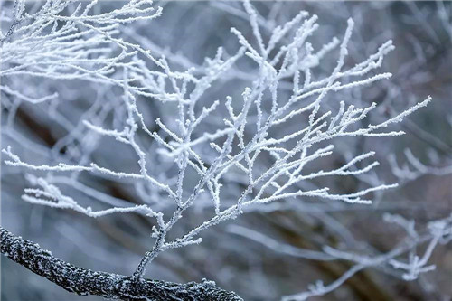 曉天霜角生霧凇。霧凇,俗稱樹掛,是低溫時空氣中水汽直接凝華,或過冷霧滴直接凍結(jié)在物體上的乳白色冰晶沉積物,是非常難得的自然奇觀。霧凇非冰非雪,詩意婉約。
