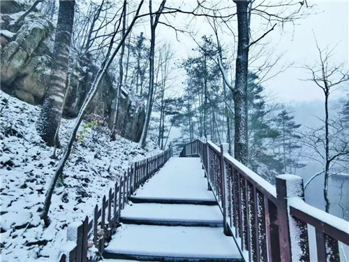 連日來的冬日暖陽,讓人一直沉浸在深秋的氛圍里。不打招呼,猝不及防,就像這第一場雪的蒞臨,白云山的美麗,總是不期而至,不期而遇。雪是冬的精靈,初雪總是唱著靈動的歌,舞著婀娜的袖,輕輕地、柔柔的在空中飄舞著,落到地面的雪花,白白的,薄薄的,給人一種恰到好處的賞心悅目,宛若童話世界。青山不老,為雪白頭。白云山景區(qū)平均海拔1800米,冬季白云山是一個銀色的世界,整個景區(qū)銀裝素裹,林海雪原。冬天行走在景區(qū)內(nèi)隨處可見冰掛、冰瀑等自然景觀。