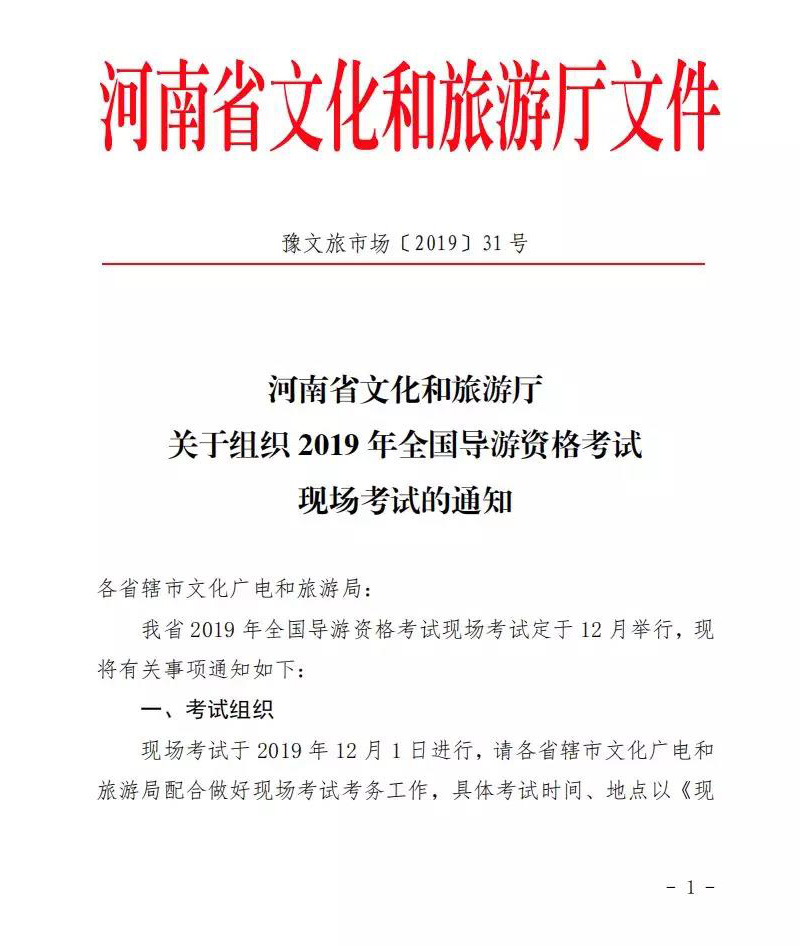 河南省2019年全國導(dǎo)游資格考試現(xiàn)場考試的通知