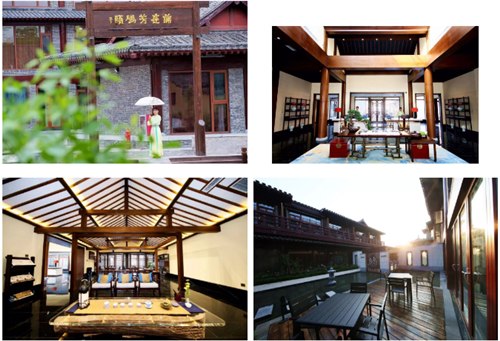相比滿(mǎn)庭芳,官驛同樣復(fù)古典雅?蜅@锊菽旧n翠,三面環(huán)水、環(huán)境清幽、舒適自然、怡然自得!