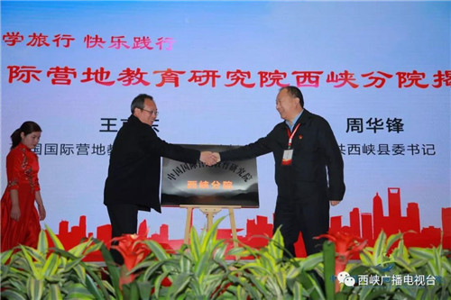 ▲中國(guó)國(guó)際營(yíng)地教育研究院院長(zhǎng)王京東與西峽縣委書(shū)記周華鋒共同為中國(guó)國(guó)際營(yíng)地教育研究院西峽分院揭牌