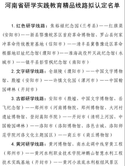 為全面貫徹黨的十九大和全國教育大會精神,認真落實《教育部等十一部門關于推進中小學生研學旅行的意見》(教基〔2016〕8 號)和《河南省教育廳等10 部門關于推進中小學生研學旅行的實施方案》(豫教基一〔2019〕13 號)等文件要求,扎實推進中小學生研學實踐教育工作,服務全省中小學生研學實踐教育,根據《河南省教育廳關于征集研學實踐教育精品課程和精品線路的通知》(教基一〔2019〕173 號)要求,省教育廳在全省開展征集研學實踐教育精品課程和精品線路活動。經過各地推薦、專家評審等程序,紅旗渠入選河南省研學實踐教育精品線路,該景區(qū)“感悟時代精神,傳承紅色基因”活動被評為為河南省研學實踐教育精品課程!