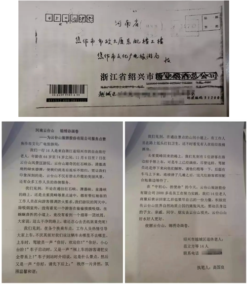 近日,焦作市文化廣電和旅游局收到了一封來自的特殊信件,信中,14位浙江老人為云臺(tái)山人的優(yōu)質(zhì)服務(wù)點(diǎn)贊!