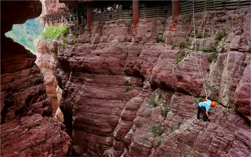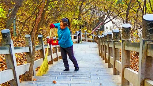 今年60歲,負(fù)責(zé)云臺(tái)山紅石峽景點(diǎn)黑龍洞附近衛(wèi)生清潔的環(huán)衛(wèi)工郭有順,是2000名云臺(tái)山人的典型代表。為了清掃落在懸崖間的垃圾,他每天都用一條繩索系在腰間,順著峭壁往下滑,瘦弱的身體懸在半空中,被游客稱為“蜘蛛俠”。不僅是撿拾垃圾,郭有順還經(jīng)常幫助游客撿拾墜落崖下的物品,為游客排憂解難。如今,懸崖上的“蜘蛛俠”已成為云臺(tái)山景區(qū)的一道風(fēng)景,郭有順也用自己的言行影響和感動(dòng)了游客,于2018年獲評(píng)“河南最美環(huán)保人物”,不久前還獲評(píng)第二屆“河南清潔達(dá)人”。