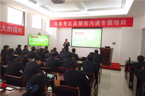 為進(jìn)一步促進(jìn)公司高效和諧氛圍,提高員工溝通技能,激發(fā)員工潛能,創(chuàng)造更高績(jī)效,12月10日,寶泉景區(qū)組織召開(kāi)了《高績(jī)效溝通》專題培訓(xùn),參加培訓(xùn)的有公司領(lǐng)導(dǎo)班子成員、各部室負(fù)責(zé)人、主管、領(lǐng)班、骨干員工100余人。