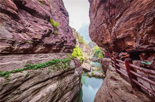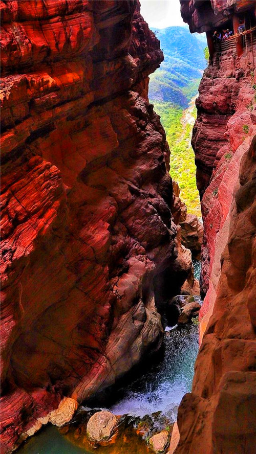 由于斷層的錯斷和風(fēng)化剝蝕作用,使得古老的巖石得以顯現(xiàn),也造就了神奇的“華夏第一奇峽”紅石峽。