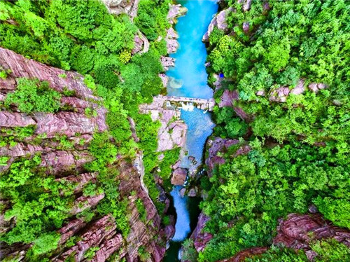 奧陶系石灰?guī)r、寒武系的石灰?guī)r、中元古代紫紅色石英砂巖自上而下形成一套標(biāo)準(zhǔn)的地質(zhì)結(jié)構(gòu),正是云臺山“地質(zhì)奇書”的立體呈現(xiàn)。