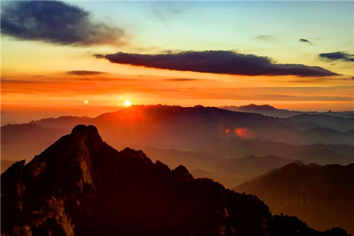 玉皇頂,被譽為“中原極頂”,是觀云海日出的理想之地。清晨,太陽躍出群山之巔之際,云海之上,一剎那光芒萬丈,天地為之動容,萬物沐浴在光輝之中,蔚為壯觀!