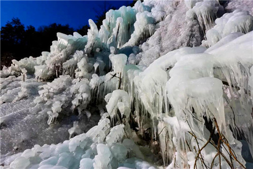 山高水長的白云山,氣勢恢宏的九龍大峽谷,古木林立的森林氧吧,山川峽谷內(nèi)隨處可見的冰瀑冰掛,冰壺冰臼,晶瑩剔透,壯觀秀麗,是冬日白云山一大看點。