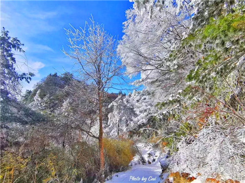 陰晴雨雪,氣溫變化,時常帶給白云山美麗的霧凇景觀。雪后初晴,碧空白云,千樹萬樹梨花開,是冬日白云山最有具唯美意境的美麗畫面。