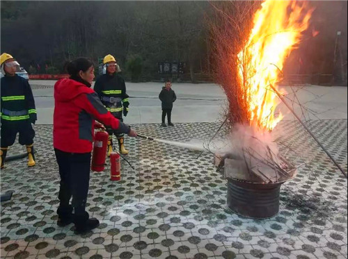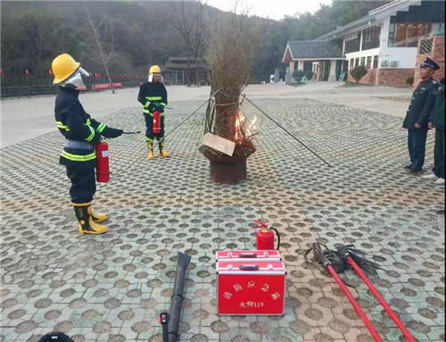 此次消防安全培訓主要針對景區(qū)全體員工,圍繞發(fā)生火災(zāi)或其他突發(fā)事件時,如何報警、如何自救、如何疏散游客和群眾進行培訓,邀請消防干警現(xiàn)場講解如何使用滅火器材,并模擬景區(qū)易燃燒樹木發(fā)生火災(zāi)。