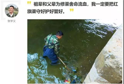 令人欣慰的是,張買江的兒子張學(xué)藝,又接過了父親的接力棒,在紅旗渠合澗渠管所工作,一年四季修渠護渠,守護著這條祖輩們用生命建造的紅旗渠。