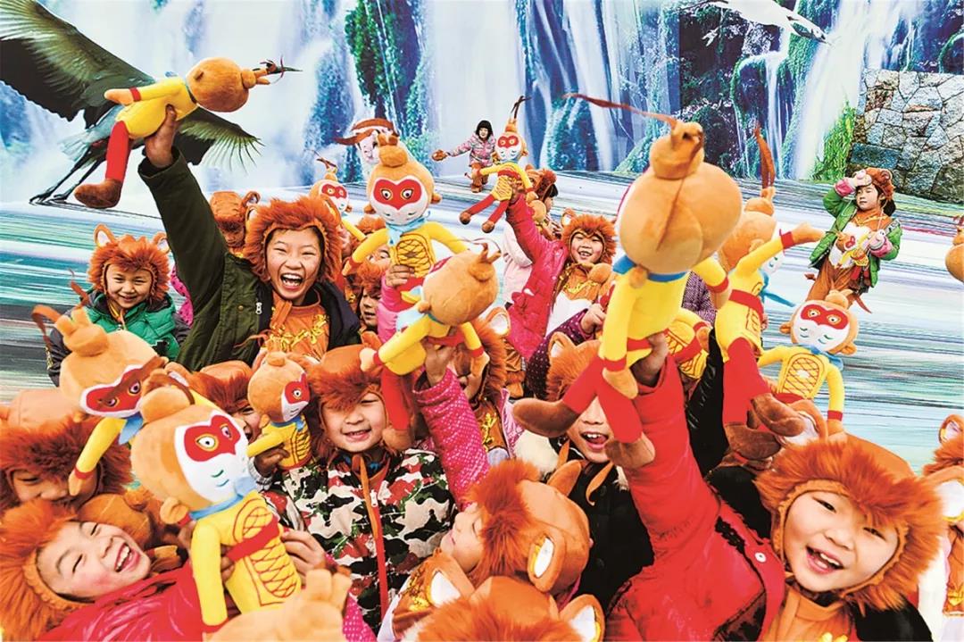元旦期間,百名萌娃扮演萌猴舞蹈迎賓,以西游記精彩橋段《真假美猴王》為原型,真人演繹,不倒翁美猴王與景區(qū)美女猴王上線互動。
