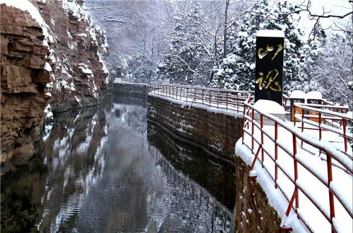 冬天的紅旗渠,幕天席地只剩下純白,純白的大地、純白的屋頂,純白的枝丫,詩意與童話并存,這就是紅旗渠的魅力。