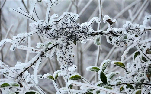 雪中的太行山脈,凝霜掛雪,一片銀白,仿佛置身于冰雪世界,行走在千里冰封的詩意境界中。山間雜草樹木也被無數(shù)的冰晶包裹著,形成各種惟妙惟肖的造型,在陽光的照射下,閃耀著白色的光芒。