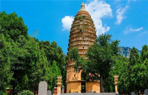 嵩岳寺塔,中國現(xiàn)存最古老的磚塔,中國唯一的一座十二邊形塔。始建于北魏宣武帝永平二年,原為宣武帝的離宮,后改建為佛教寺院;孝明帝正光元年改名“閑居寺”,并廣為增建,殿宇達(dá)千余間,僧眾700余人。