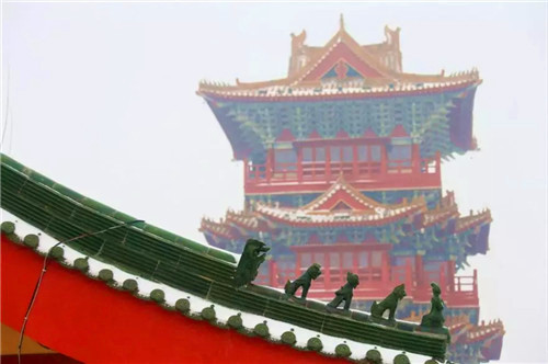 雪中的清明上河園,粉雕玉琢,碧樹(shù)凝珂。古風(fēng)的建筑在雪中個(gè)個(gè)都是白衣勝雪的模樣。