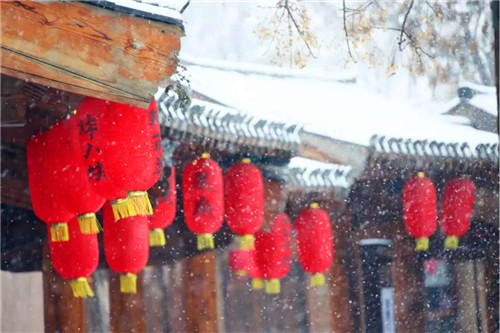 風(fēng)花雪月紅墻內(nèi),人間煙火茅瓦中。南苑的一片雪白中,夾雜著一抹耀眼的紅。