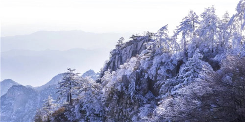 雪中的堯山大地白茫茫一片,天空灰蒼蒼,樹木、房屋在冰雪天地中若隱若現(xiàn)。看一眼便難忘,讓人沉醉于其中。