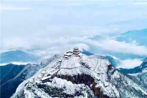 像棉絮一般的雪,像蘆花一般的雪,像蒲公英種子一般的雪,邁著絕美的舞姿,在王屋山中隨風(fēng)飛舞。薄霧繚繞,云海輕瀉,一幅夢幻畫卷在眼前緩緩展開。