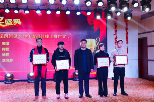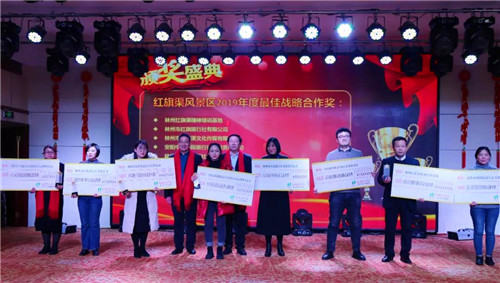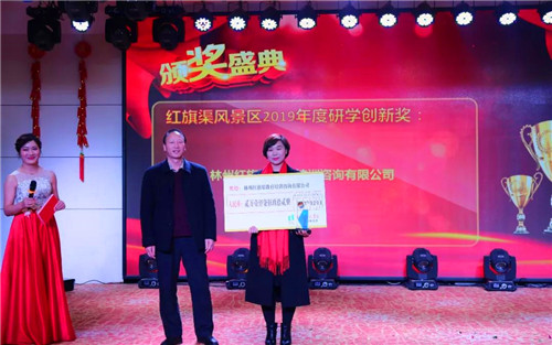 紅旗渠風(fēng)景區(qū)副總經(jīng)理栗攀宣讀旅行商獎(jiǎng)勵(lì)名單,并在會(huì)上公布了2019年度紅旗渠風(fēng)景區(qū)研學(xué)創(chuàng)新獎(jiǎng)、突出貢獻(xiàn)獎(jiǎng)、最佳銷(xiāo)售獎(jiǎng)、最佳渠道拓展商獎(jiǎng)、最具潛質(zhì)獎(jiǎng)、最佳線上推廣獎(jiǎng)、最佳媒體合作獎(jiǎng)、最佳合作單位等多個(gè)重要獎(jiǎng)項(xiàng),感謝大家長(zhǎng)期以來(lái)對(duì)紅旗渠旅游的支持與厚愛(ài),敬自己、致未來(lái),期待2020年大家能夠凝心聚力、攜手同行、再創(chuàng)佳績(jī)!