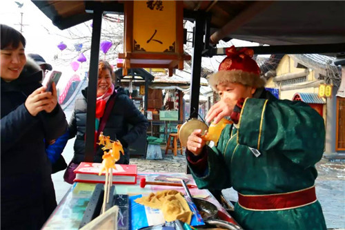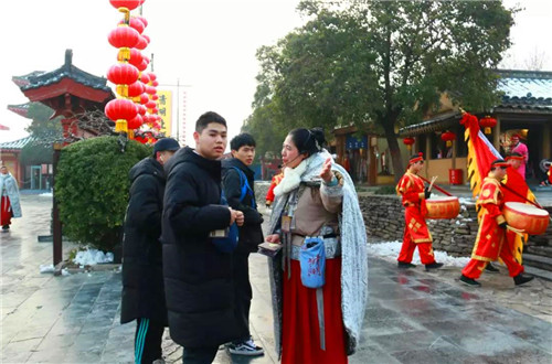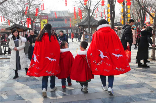 剛走進園區(qū)就聽見隱約傳來的輕盈笑聲,游客們在免費換宋裝處換上保暖的披風(fēng),和我們的服務(wù)人員一起,露出了這個冬天暖心的微笑。