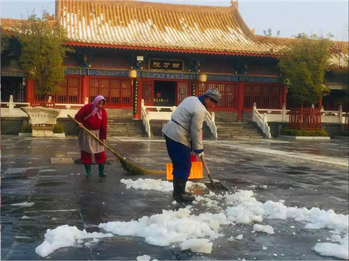 這不,前兩天一場紛飛的大雪如期而至,溫度也隨之下降,但氣溫的驟降擋不住清園人優(yōu)質(zhì)服務(wù)的熱情,讓我們走進園區(qū)一線,看看堅守一線的清園人。