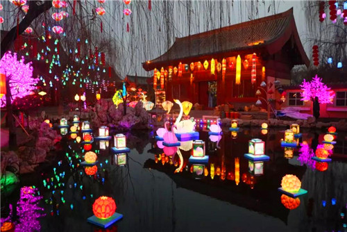 到了夜晚,五彩斑斕的燈籠宛如冬天寒夜里的小精靈,綻放出屬于自己的色彩。