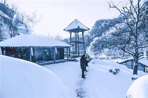 小溝背的冬天有一種與冰雪有緣的美麗,夏季峽谷的溪流、山澗的瀑布,在冬季便凝結(jié)成一種淡淡的清俊。萬籟俱寂,世界仿佛凝固。置身于蕭瑟的曠野,看木葉落盡的群林,聽鳥鳴山澗的回音,也覺得不虛此行。
